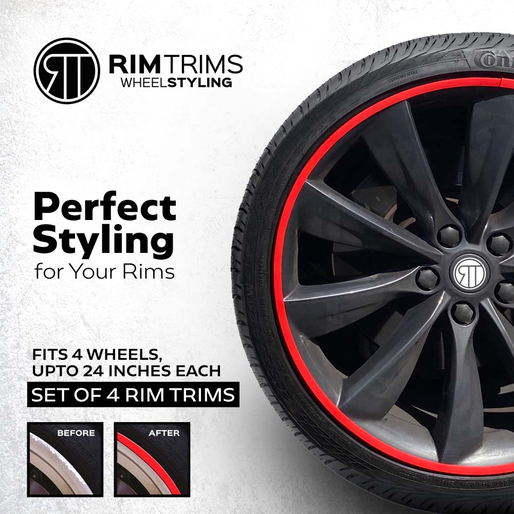 - Durable and Easy to Install – Each RT Rim Trims kit includes enough material to protect 4 wheels, up to 24 inches each. They are extremely easy to install, they simply stick to the wheel with a very high bond tape for easy DIY installation with no removal of the tire required.